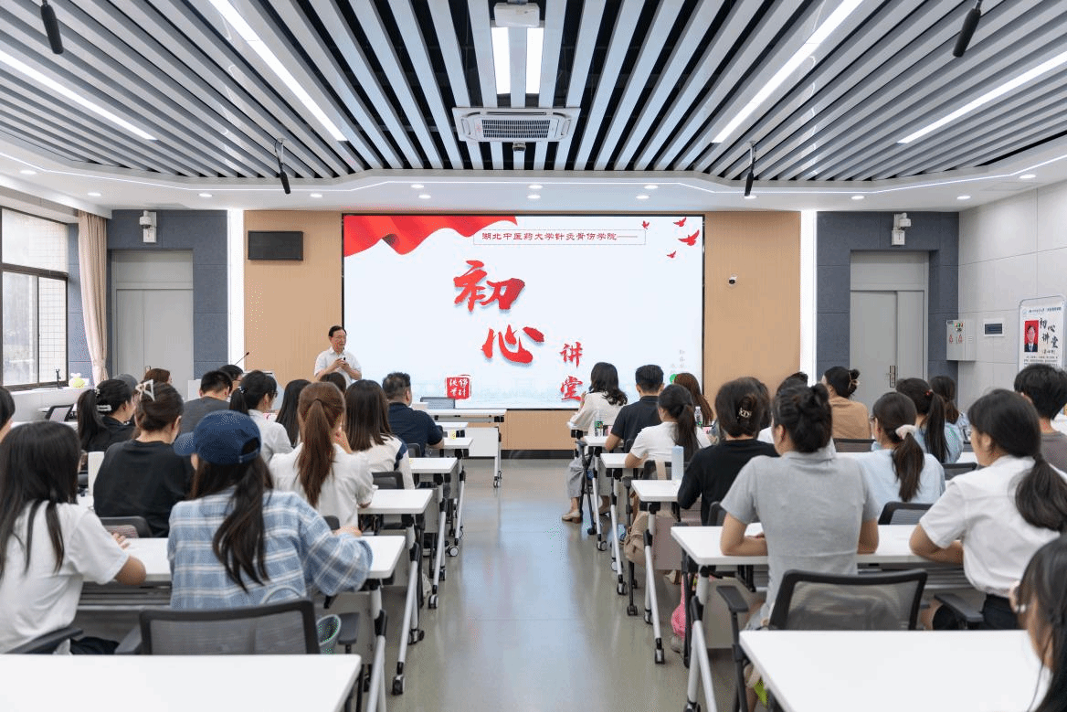 近日,针灸骨伤学院第四期“初心讲堂”在黄家湖校区本草苑Y102智慧教室举行。岐黄学者、我校王华教授受邀讲授专题党课。针灸骨伤学院领导班子、教职工党员、全体专职辅导员、学生党员代表参加活动,针灸骨伤学院相关负责人主持活动。
