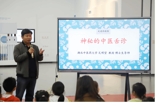 10月26日,“科学家讲故事”系列科普课堂(第二讲)在湖北省科技馆一楼院士成果展厅开讲,我校基础医学院孔明望教授应邀参加科学家讲故事”科普课堂并作“神秘的中医舌诊”主题讲座。