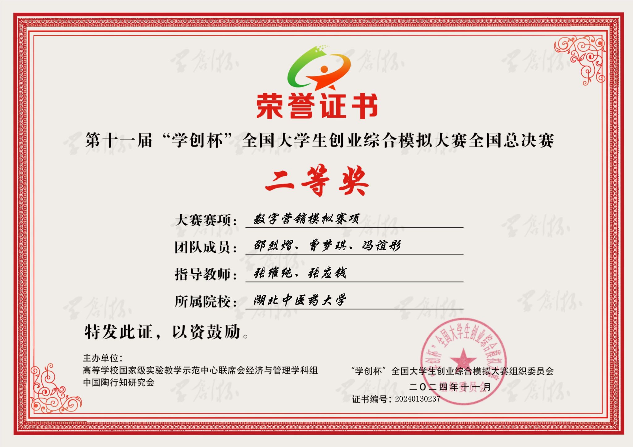 11月3日,第十一届“学创杯”全国大学生创业综合模拟大赛总决赛在徐州举办。由我校管理学院教师张维纯、张应钱老师指导,学生邵烈熠、曾梦琪、冯谊彤组成的队伍进入全国总决赛。经过激烈角逐,我校参赛团队在数字营销模拟赛项中获全国二等奖,创造了我校在该项赛事上的历史最佳成绩。