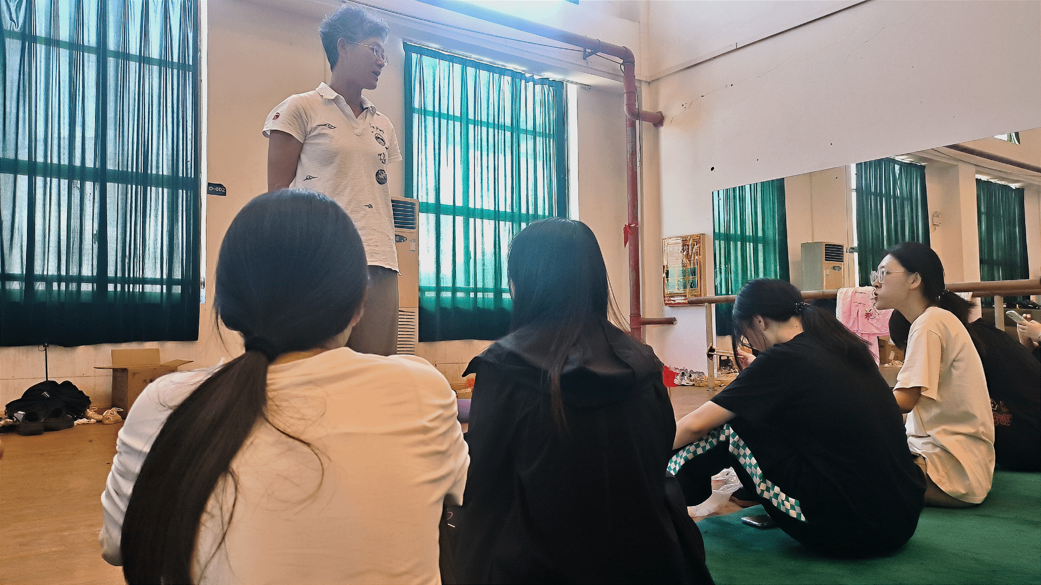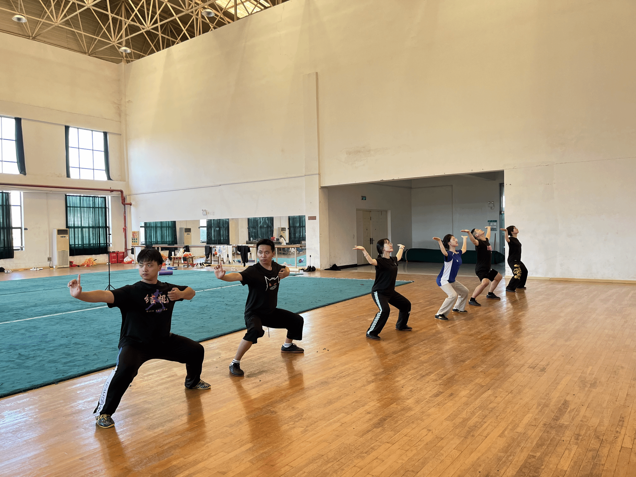 “如何从过去熟知且擅长的武术套路领域转换到健身气功领域,是我们面临的第一道挑战。” 团队暑期训练教练、指导老师李航老师介绍,武术套路以技击动作为主,健身气功则要求形体活动、呼吸吐纳、心理调节相结合,注重内在力量,这就要求队员们转变动作风格和发力习惯,重新学习如何通过呼吸和意念引导动作,体验一种全新的身体语言。