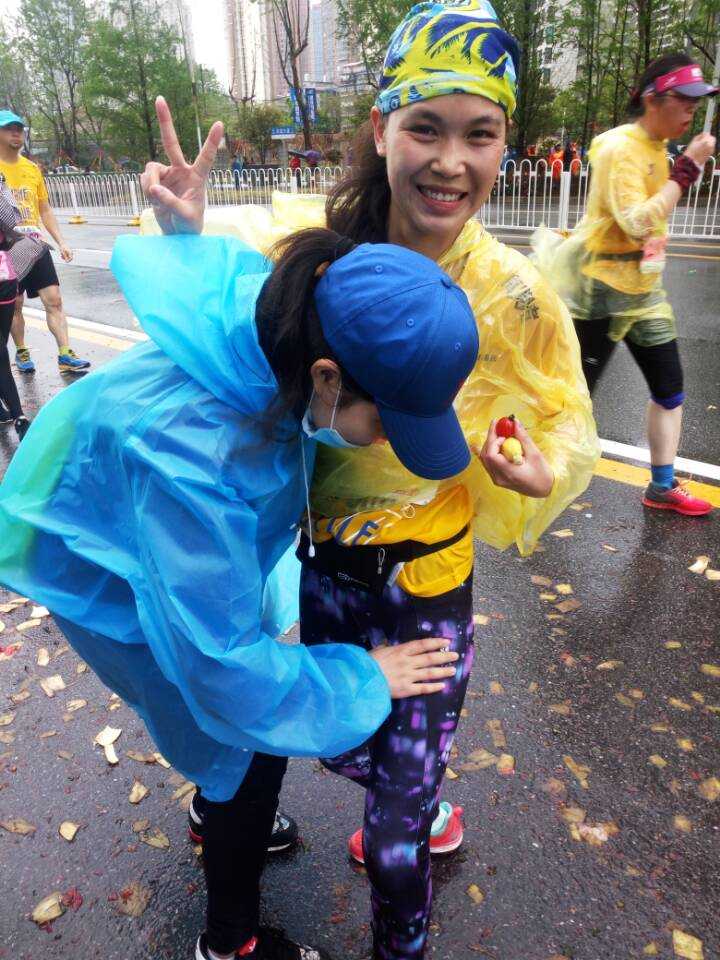 “这是我的第四次马拉松比赛啦!”参加马拉松半程跑的蒋毅斌老师笑言,自己虽然年纪比许多选手大,但心态很年轻。“我喜欢在跑道上自由奔跑的感觉。虽然今年天公不作美,但每个运动员都迎着风雨、迈着坚定的步伐冲向终点,这就是‘大武汉’精神。”蒋老师说道。