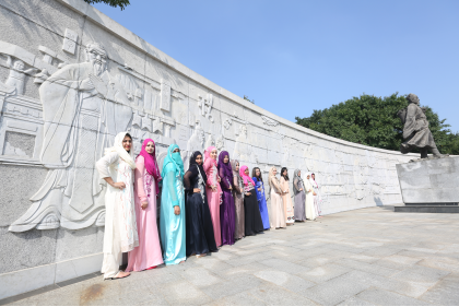 这张图,曾作为新华社通稿在全球发布,拍摄场景为:清明节时,学校全国优秀社团国学社的同学们在黄家湖校区李时珍广场行释菜古礼,祭奠李时珍。