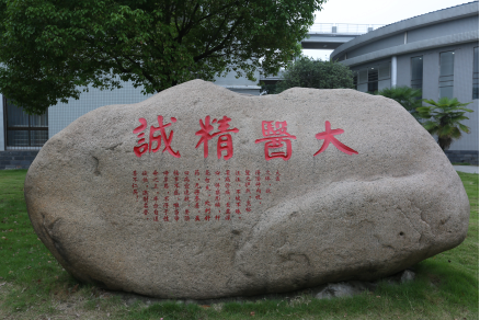 黄家湖校区知行大道明德楼侧“大医精诚”石折射李时珍精神及中医药大学文化自信。
