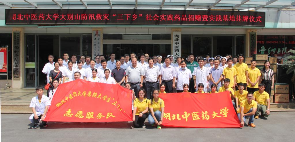 学校是“健康湖北”志愿服务总队,2016年,“三下乡”博士团到黄冈抗洪救灾,为受灾群众送医送药,光明日报、中国教育报、中国青年报作了集中报道。
