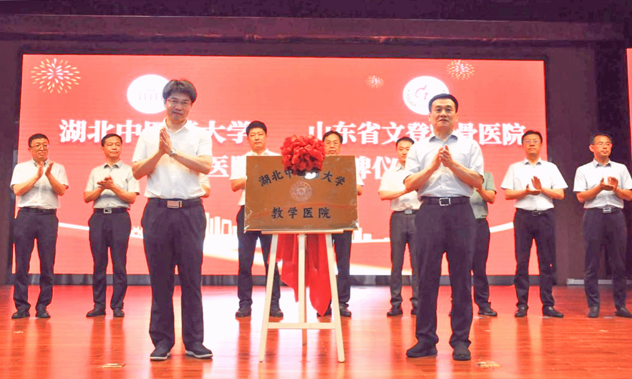 8月9日,学校与山东省文登整骨医院在医院会议中心举行教学合作签约暨教学医院揭牌仪式。校党委常委曹继刚、教务处相关负责人,山东省威海市文登区副区长花健,区卫生健康局党组副书记、副局长潘刚,山东省文登整骨医院党委书记王肇刚、院长姜红江及医院领导班子全体成员、医院科室主任及业务骨干代表等参加仪式。仪式由山东省文登整骨医院副院长王飞主持。
