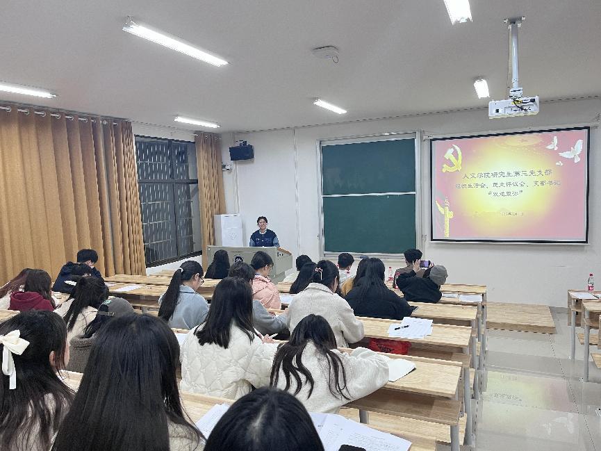 3月1日晚,人文学院研究生第三党支部组织生活会、民主评议会、支部书记“双述双评”会在我校雨湖校区2教101教室召开。人文学院党委委员、副院长袁星洁教授、第三党支部32位正式党员以及5位群众代表参加会议。