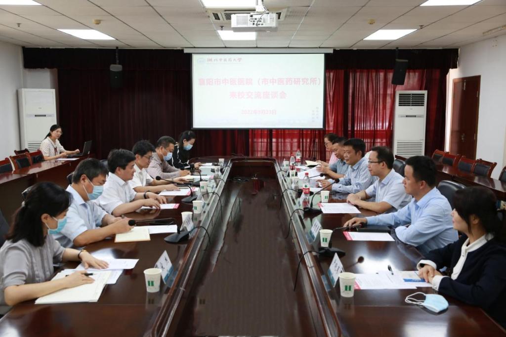 本网讯 9月23日,学校附属襄阳市中医医院(襄阳市中医药研究所)党委书记、我校襄阳校友会秘书长皮红林,党委副书记、院长宋俊,副院长王建修,医务处主任余志勇,规划发展办主任李凤新,科教科主任卢晓苇一行来校交流座谈。座谈会在黄家湖校区明德楼一楼会议室召开,校长刘松林,校党委常委曹继刚,学校办公室、科学技术处、研究生处负责人参加会议。会议由曹继刚主持。