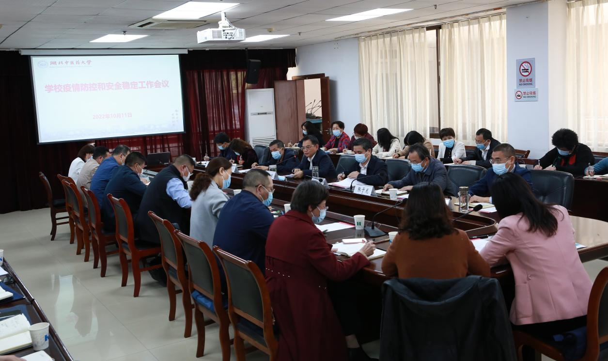 本网讯 10月11日,学校在黄家湖校区明德楼A座一楼会议室召开疫情防控和安全稳定工作专题会议,研究部署学校安全稳定工作。在校校领导,学校各部门、各单位主要负责人,附属湖北省中医院分管院领导及党办、院办负责人参加会议。会议由校党委书记唐峻主持。