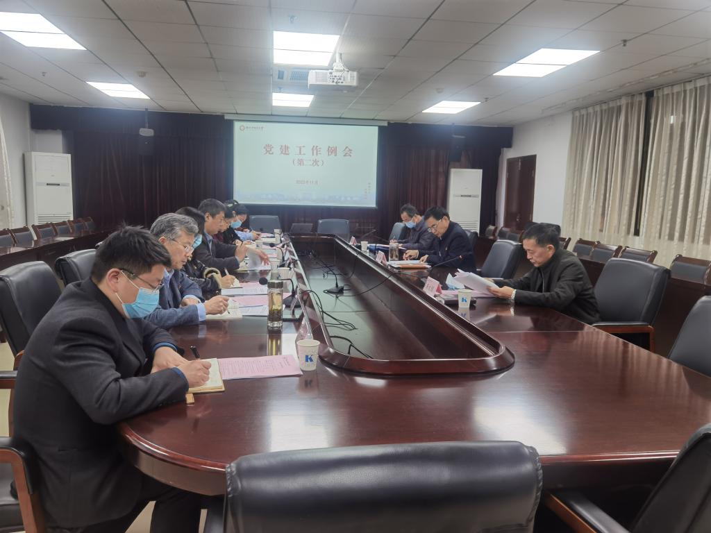 本网讯 11月15日,学校党建工作例会第二次会议在黄家湖校区明德楼A座一楼会议室召开。校党委书记唐峻,校党委副书记李水清、张子龙,学校办公室、党委组织部、党委统战部、党委宣传部、纪委 监察专员办公室综合室、学生工作部、教师工作部、保卫处、武装部等部门有关负责同志参加会议。会议由唐峻主持。