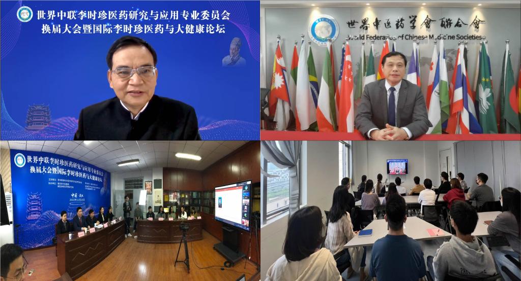 本网讯 11月23日,由世界中医药学会联合会主办、我校承办的世界中联李时珍医药研究与应用专业委员会换届大会暨国际李时珍医药与大健康论坛在武汉召开。大会以线上线下相结合的方式进行,主会场设在我校,并在澳门大学中华医药研究院、俄罗斯莫斯科国际东方医学学校等地设置分会场。来自海内外的理事会成员、参会代表共2000余人参加会议。
