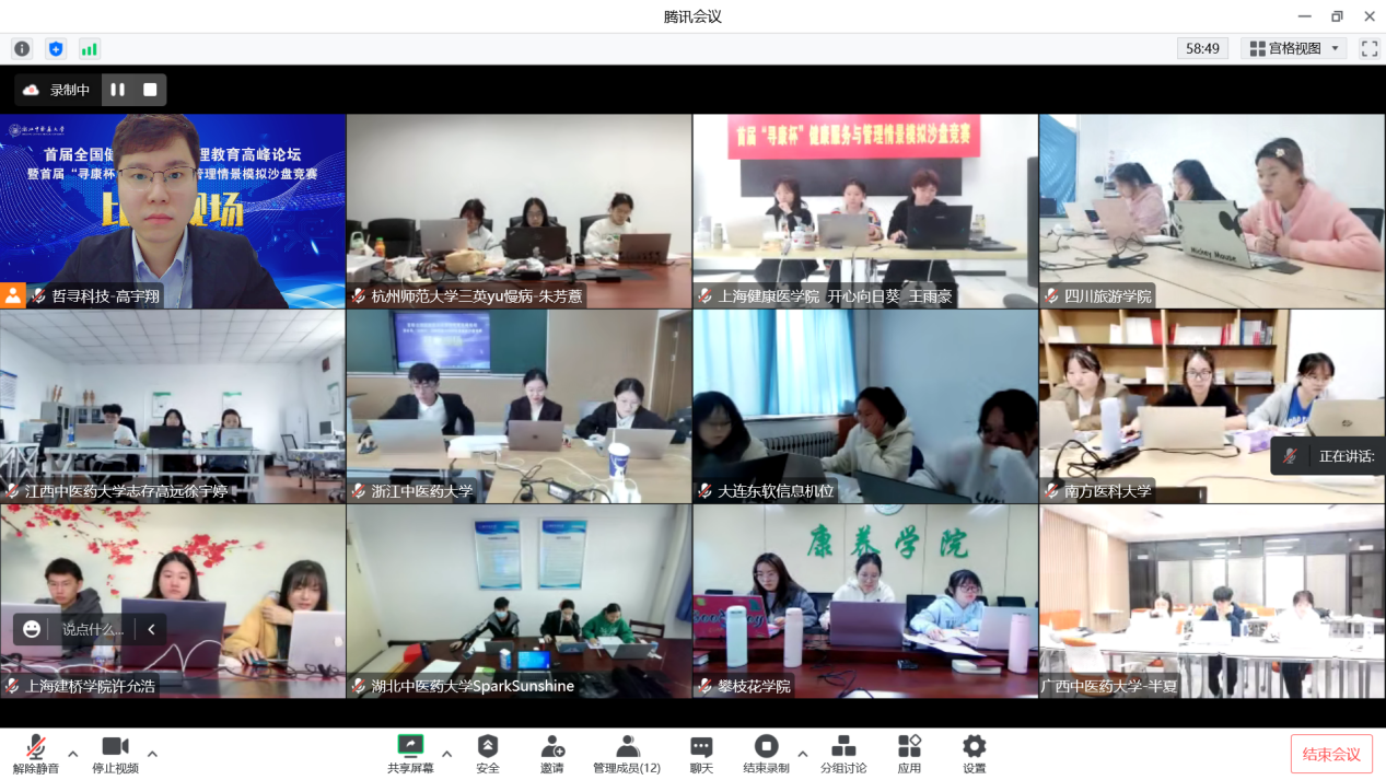 此次竞赛以线上形式举办,吸引了来自全国51所高校256名师生代表参赛,围绕健康管理方案设计、健康管理情景模拟沙盘对抗以及团队答辩三个环节进行角逐。