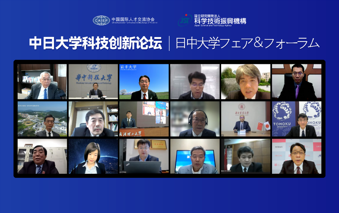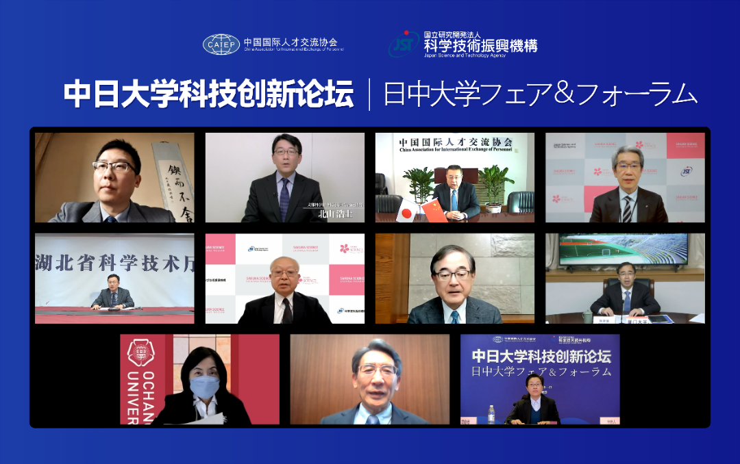本网讯 11月28日至29日,2022年中日大学科技创新论坛以线上形式举行。论坛由中国国际人才交流协会(CAIEP)与日本科学技术振兴机构(JST)共同主办,湖北省科技厅承办,湖北省对外科技交流中心、湖北省国际人才交流协会、深圳国际人才交流中心具体执行。中国科技部外专司副司长李昕,日本文部科学省科学技术学术统括官北山浩士,中国国际人才交流协会副主任夏兵,日本科学技术振兴机构理事甲田彰,湖北省科技厅副厅长吴骏等嘉宾出席论坛开幕式并视频致辞。我校校长刘松林应邀出席论坛,并作主题报告。