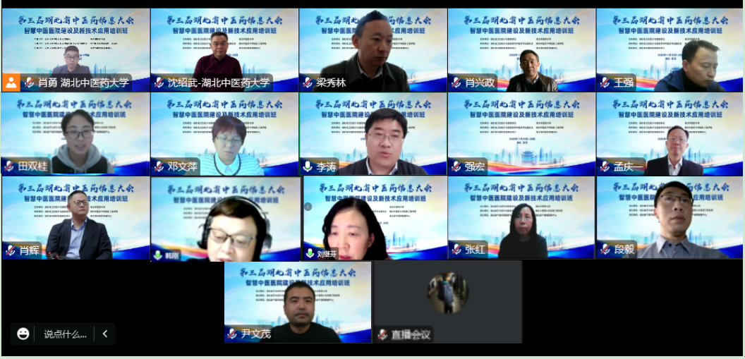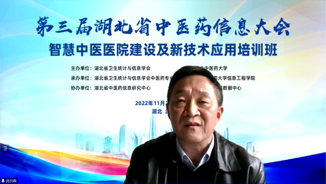 大会以“聚焦数字中医药、推进我省中医药信息化建设、助力中医药强省、践行党的二十大精神”为主题,围绕推进湖北省中医药信息化高质量发展、加强信息化支撑和服务好中医药传承创新发展,共研智慧中医医院建设,共享建设经验成果,共商新一代信息技术应用。来自省内外各级各类中医医院、高等院校、科研机构1万余人次在线实时观看直播。校长刘松林致辞,湖北省中医药管理局副局长李涛,湖北省卫生统计与信息学会副会长、湖北省卫生健康信息中心主任肖兴政讲话。大会开幕式由湖北省卫生统计与信息学会中医药专业委员会主任委员、我校信息工程学院沈绍武教授主持。