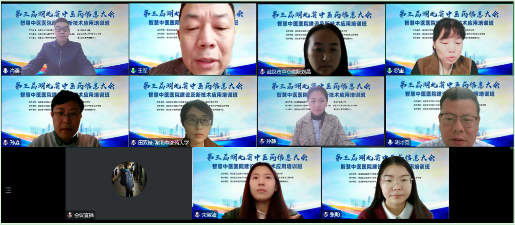 大会邀请了中国中医科学院广安门医院、武汉大学中南医院、学校附属湖北省中医院、武汉市中西医结合医院、宜昌市秭归县中医医院等单位15位专家学者,围绕中医临床大数据知识工程、互联互通推进智慧医院建设、医院信息集成平台建设、电子病历系统建设及实践、医共体信息化建设、网络安全等主题进行授课。我校沈绍武教授围绕“中医药临床大数据知识工程规划与设计”进行授课与分享。信息工程学院邓文萍教授主持了部分专家授课。