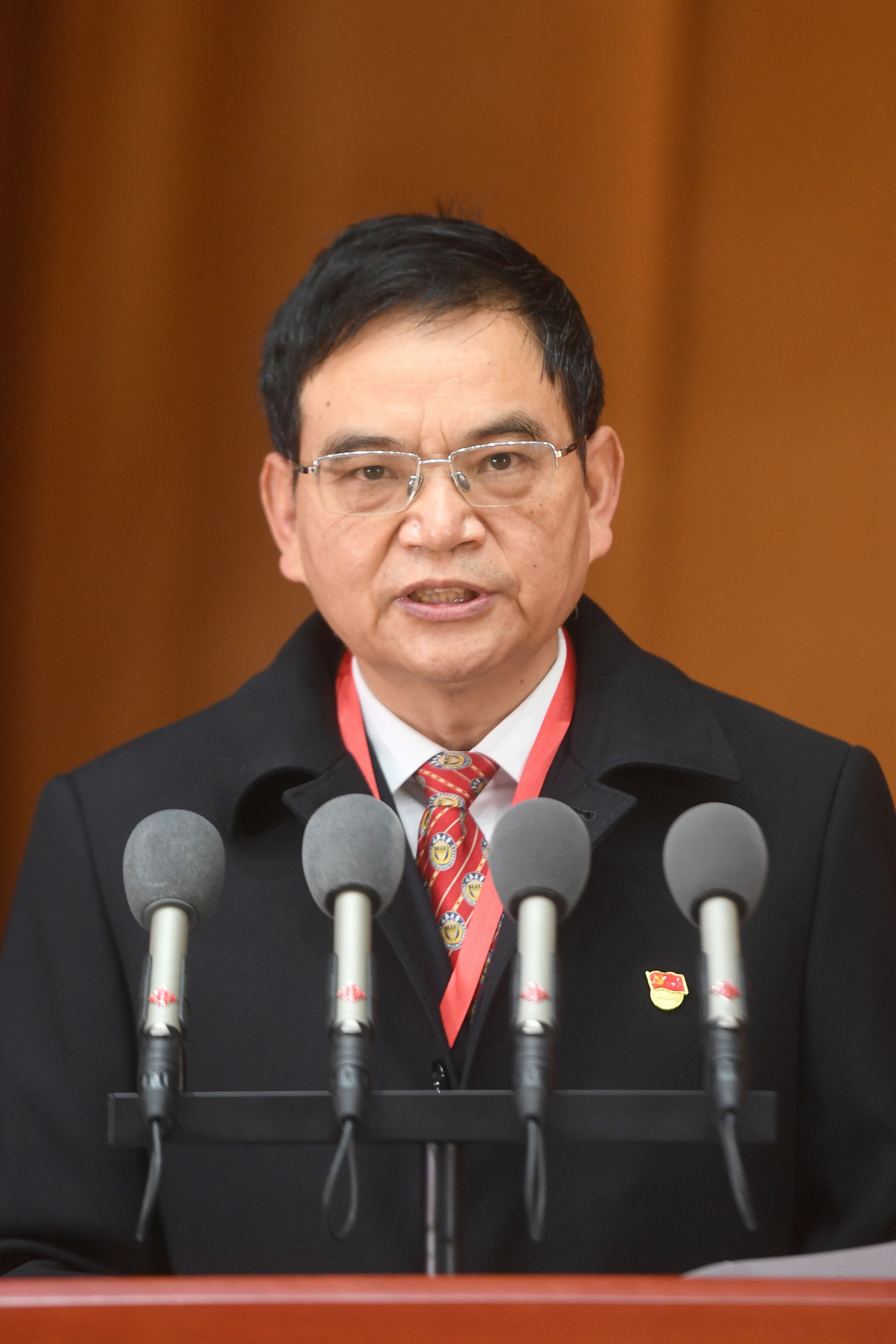 校党委书记唐峻代表中国共产党湖北中医药大学第一届委员会向大会作报告