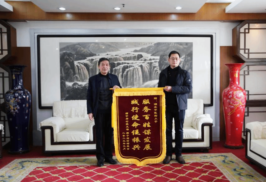 本网讯 1月9日,学校定点帮扶村房县门古寺镇狮子岩村支部书记饶飞来校赠送锦旗,感谢学校及驻村工作队一年多来对狮子岩村的帮扶。校党委书记唐峻、校长刘松林与饶飞进行座谈,党委组织部负责人、驻村第一书记参加座谈。