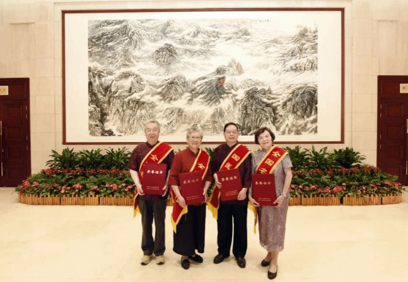 凃晋文教授(右二)当选国医大师,孙国杰教授(左一)、附属湖北省中医院姜惠中教授(左二)、杰出校友黄光英教授(右一)当选全国名中医
