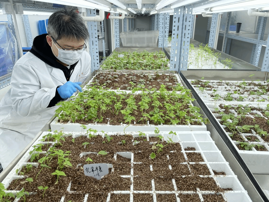 学校中药生态农业创新团队成员观察半夏转基因材料