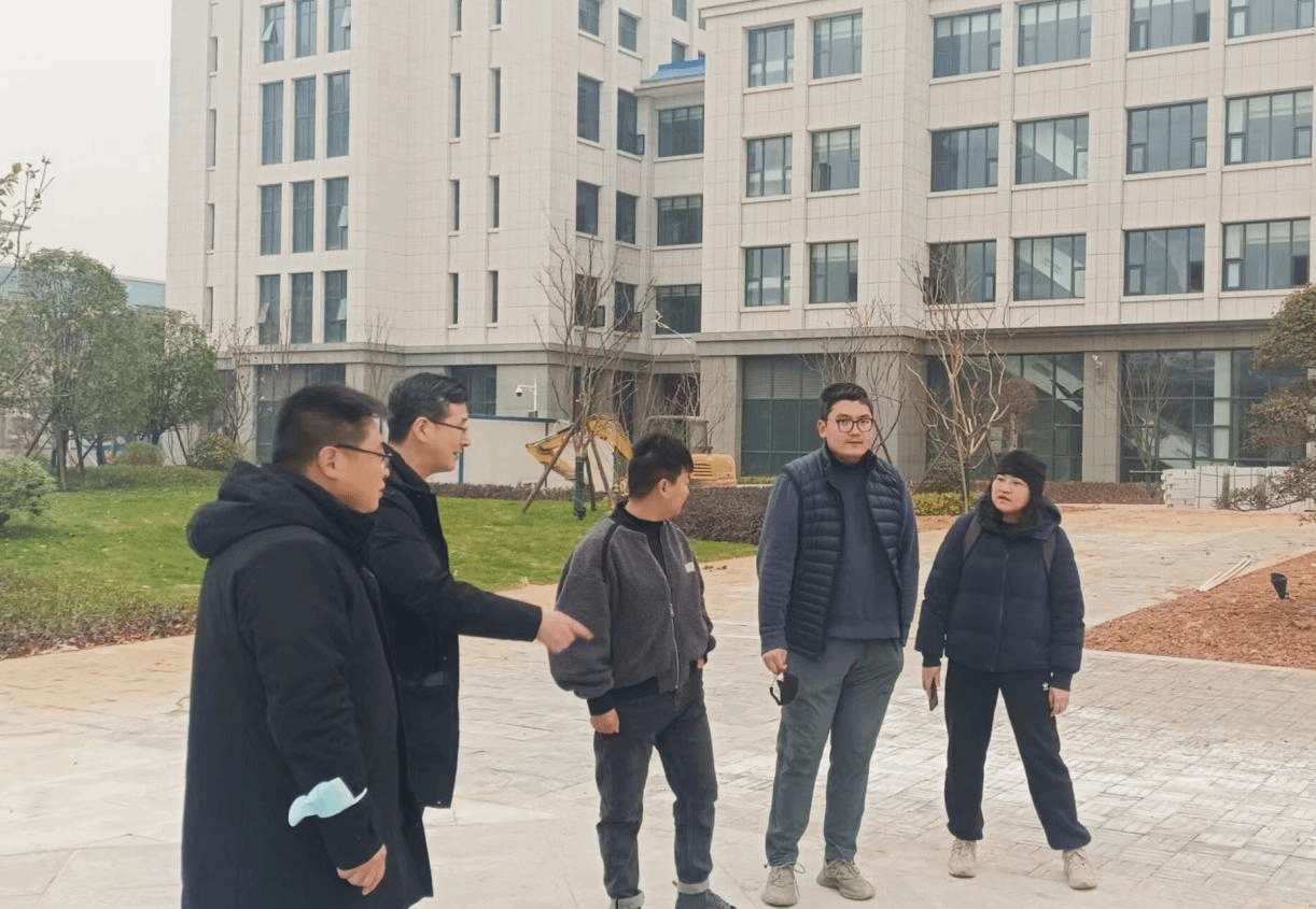 基本建设处工作人员与设计、施工单位检查中医药综合实训大楼施工情况
