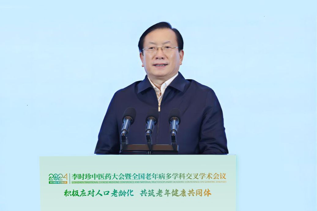 王忠林说,习近平总书记深刻指出,中医药作为传统医药的杰出代表,是中华文明的瑰宝。湖北中医药历史源远流长、创新活力迸发、产业基础良好,发展中医药前景广阔。本次大会聚焦“积极应对人口老龄化,共筑老年健康共同体”主题,著名专家学者、行业翘楚齐聚一堂,弘扬中医文化、共谋健康之策,必将有力促进中医药与老年健康深度融合,为加快建设健康中国注入强劲动能。当前,湖北正坚定贯彻习近平总书记考察湖北重要讲话精神,落实“切实把中医药继承好发展好利用好”的重要要求,深入实施中医药振兴发展工程,为加快建成中部地区崛起的重要战略支点提供坚实支撑。我们将坚持向新而行,大力推进湖北时珍实验室建设,促进中医药多学科交叉融合,加强特色人才培养和新药研发,全力构筑中医药强省新优势;坚持聚链成群,着力推进“十大楚药”延链补链强链,做大做强一批百亿级龙头企业,加快构建现代中医药产业体系,全力激活中医药发展新引擎;坚持强医惠民,深入开展“中医中药荆楚行”活动,更好满足人民群众健康需求,全力打造中医药服务新标杆,与社会各界携手并进、同向同行,共同谱写中医药传承创新发展新篇章。