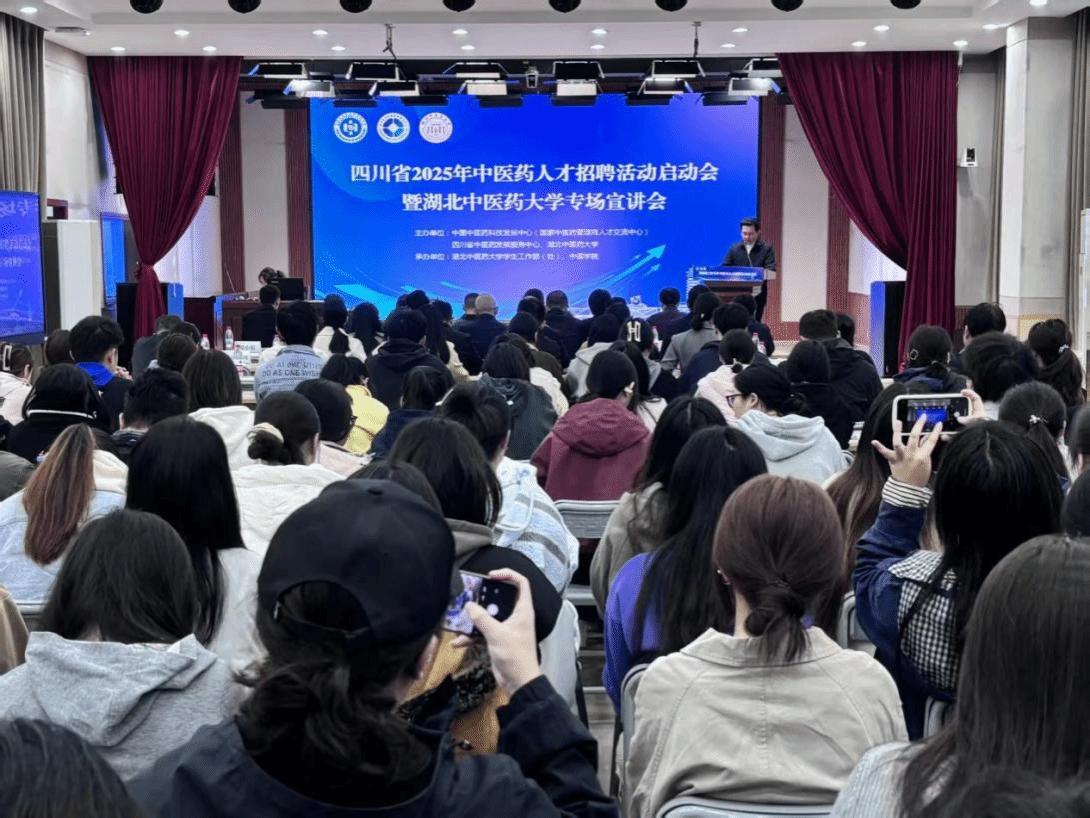 杨波在致辞中指出,四川省2025年中医药人才招聘活动选择在学校启动并举办专场宣讲会,既是对学校中医药人才培养质量的高度认可,更是对鄂川两地中医药事业协同发展的有力推动。此次活动不仅为学生提供了“家门口”的优质就业机会,更让学校近距离学习了四川省中医药事业和产业发展的先进经验,为学校进一步优化人才培养方案、深化产教研融合提供重要参考。杨波勉励同学们珍惜机会、主动对接,找准与自身发展相契合的岗位方向,把个人理想融入中医药事业发展的大局中,在中医药沃土上实现人生价值。