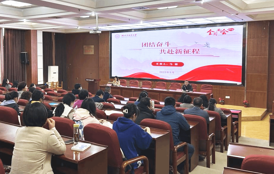 马骏从全国两会概况、习近平总书记下团组、全国两会热词、促进中医药传承创新发展等方面,全面系统传达了全国两会精神,重点传达了习近平总书记在全国两会期间的重要讲话精神、政府工作报告、国务院机构改革方案、选举和决定任命新一届国家机构领导人、全国政协十四届一次会议政治决议等主要内容,对全校统战干部、广大统战成员深刻认识全国两会重大意义和主要特点,全面准确把握习近平总书记重要讲话精神主要内容和核心要义具有很强的指导意义。