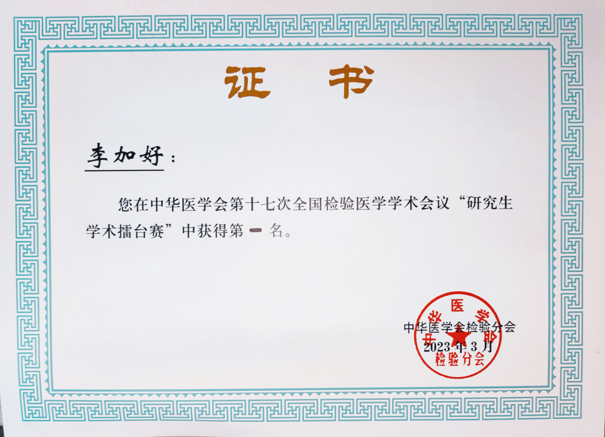 本网讯 3月30日至4月1日,由中华医学会、中华医学会检验医学分会主办,湖南省医学会承办的中华医学会第十七次全国检验医学学术会议在长沙召开。此次会议是中国检验医学领域的盛会,大会设1个主会场、16个分会场、6场比赛、25个分论坛、54场企业卫星会,内容涵盖临床检验和实验室管理各领域最新研究成果及发展趋势,吸引了来自全国各地5100余名专家学者参加。经过激烈角逐,我校检验学院张国军教授指导的2022级博士研究生李加好在研究生学术擂台赛中斩获第一名。