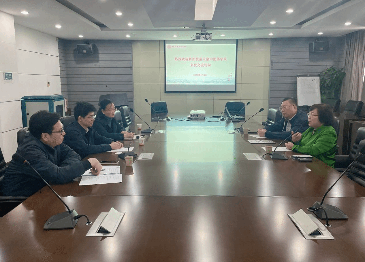 本网讯 4月4日,新加坡富乐康中医药学院院长徐常清一行来校交流访问,双方在黄家湖校区云泽楼四楼会议室召开座谈会。校党委常委曹继刚,国际交流与合作处负责人及相关工作人员参加会议。