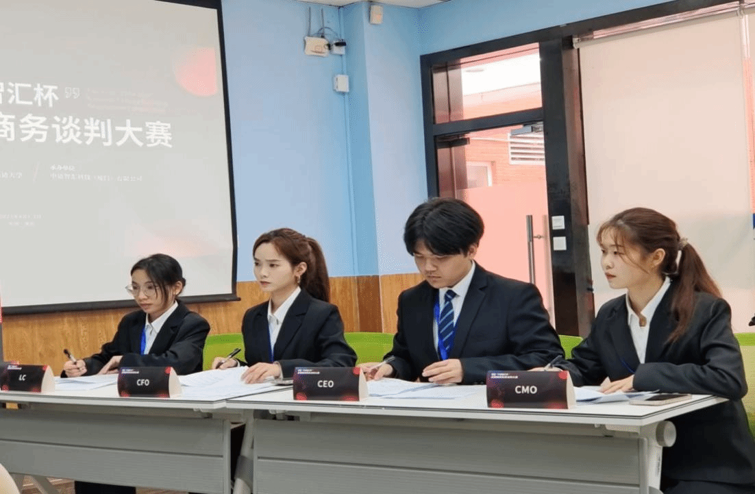 此次大赛以“智慧商谈、合作共赢”为主题,分为初赛、复赛和总决赛三个阶段。外国语学院商务英语教研室与管理学院国际商务教研室开展合作、积极备赛,由双方教师联合培养8名学生参加初赛、复赛,最终商务英语专业罗文清、岑桂香、钱彦丰、刘逸4名学生组成的团队代表学校晋级全国总决赛,与全国35所高校的队伍展开巅峰对决。总决赛为现场面对面商务谈判,经过激烈角逐,我校团队以扎实的商务综合知识、专业的谈判技巧、流利的英文表达脱颖而出,取得佳绩。