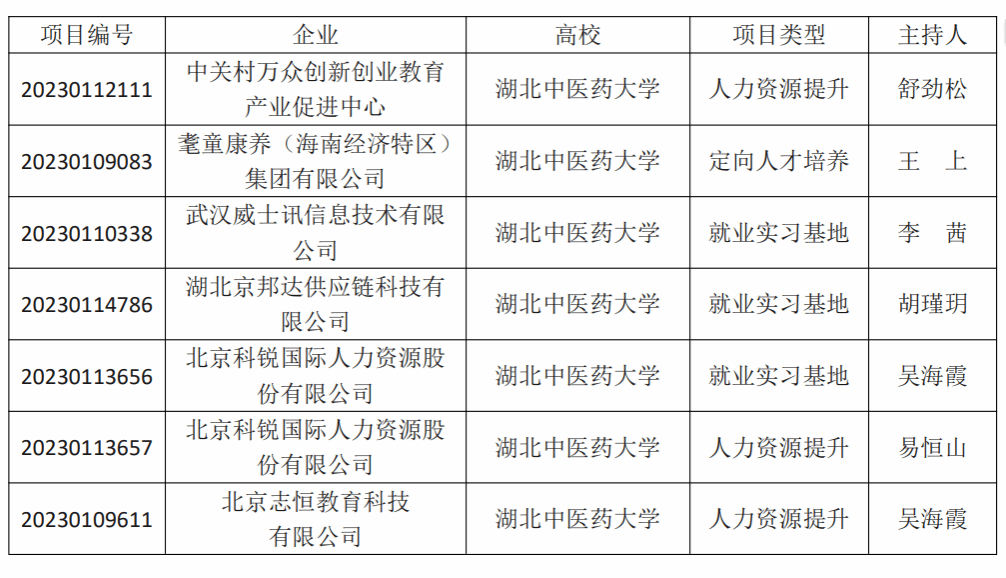 本网讯 近日,教育部高校学生司公布第二期供需对接就业育人立项名单,我校与中关村万众创新创业教育产业促进中心、耄童康养(海南经济特区)集团有限公司、武汉威士讯信息技术有限公司、湖北京邦达供应链科技有限公司、北京科锐国际人力资源股份有限公司、北京志恒教育科技有限公司等单位对接的7项就业育人项目获批立项。