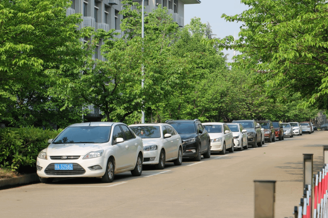 机动车停车泊位内,整齐有序。规范停车,让文明“归位”。