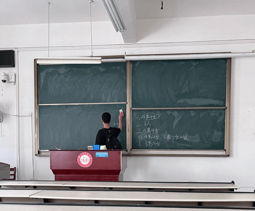 课前,同学主动擦除黑板上的板书,为即将到来的课堂做好准备。