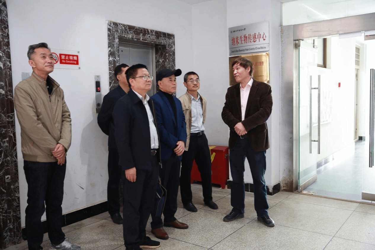 本网讯 4月27日,省政府参事、华中农业大学教授、博士生导师韩鹤友,省政府参事,省委党校原常务副校长陶良虎,省政府办公厅参事业务处副处长、三级调研员熊世民等一行6人来校调研。调研组一行实地走访了中医药微生物组研究所、教育部老年脑健康中医药防护技术与新产品研发工程研究中心、纳米生物传感中心及中药标本馆。
