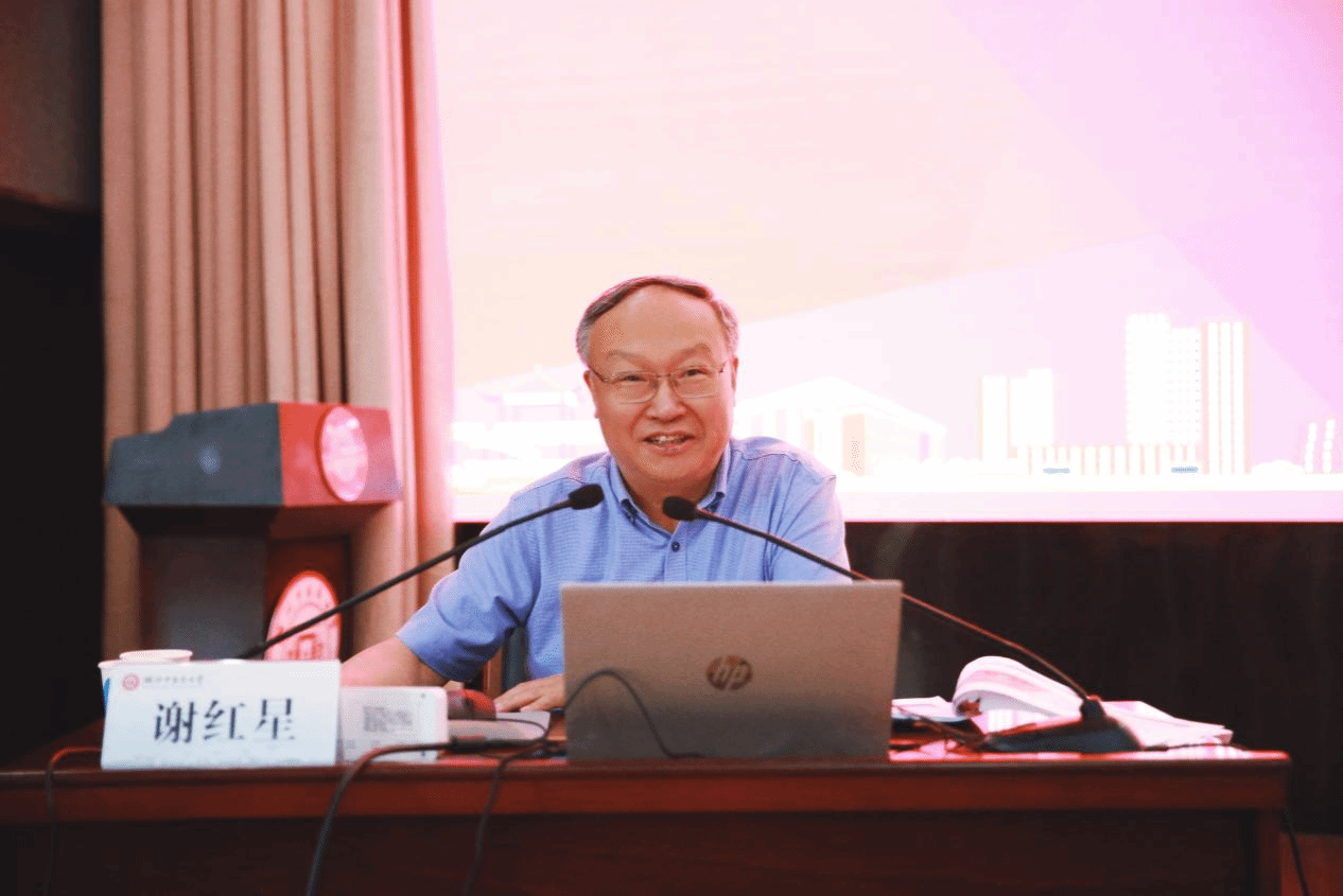 本网讯 为持续推进学习贯彻习近平新时代中国特色社会主义思想的深化、内化、转化工作,6月9日,学校举办第十期“大学治理高端论坛”,邀请湖北大学党委书记谢红星作专题辅导报告。校领导班子成员,中层干部,正科级干部参加学习。报告会由校党委书记唐峻主持。