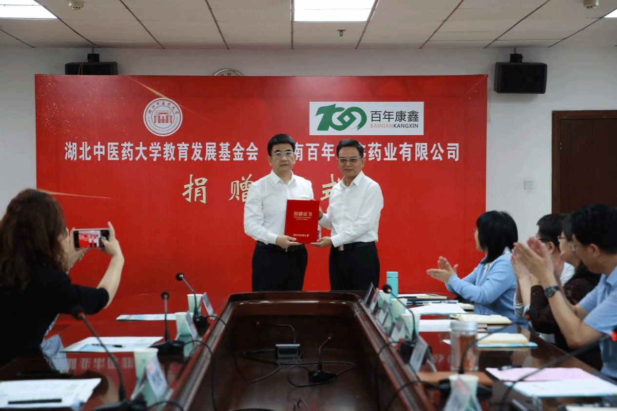 曾志敏介绍了河南百年康鑫药业有限公司的发展历程、经营理念、产品研发等情况,对湖北中医药大学及其附属医院在中医药事业发展中的贡献表示钦佩。此次捐赠,希望以“百年康鑫中医药基金”的设立为契机,吸引更多的企业和爱心人士参与到弘扬中医药文化、传播中医药知识、提升中医药服务水平上来。