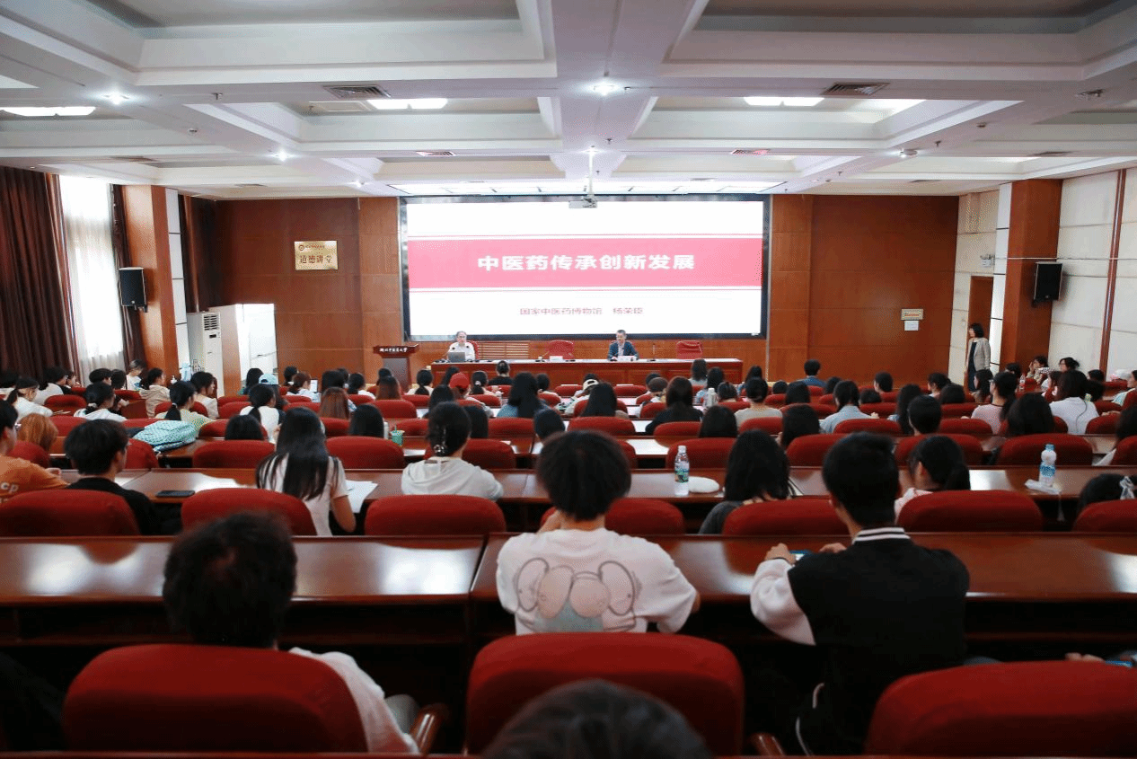 开幕式后,杨荣臣作题为“中医药传承创新发展”的专题讲座。他以中医药传承创新发展的重大意义和背景情况为切入点,围绕《中医药战略发展规划纲要(2016-2030年)》《中国的中医药》《中华人民共和国中医药法》等,系统梳理了中医药政策体系的发展历程。他勉励在场师生要坚定中医药文化自信,勤学苦读、积极进取、勇攀高峰,做新时代中医药事业的坚守者、传播者和践行者。
