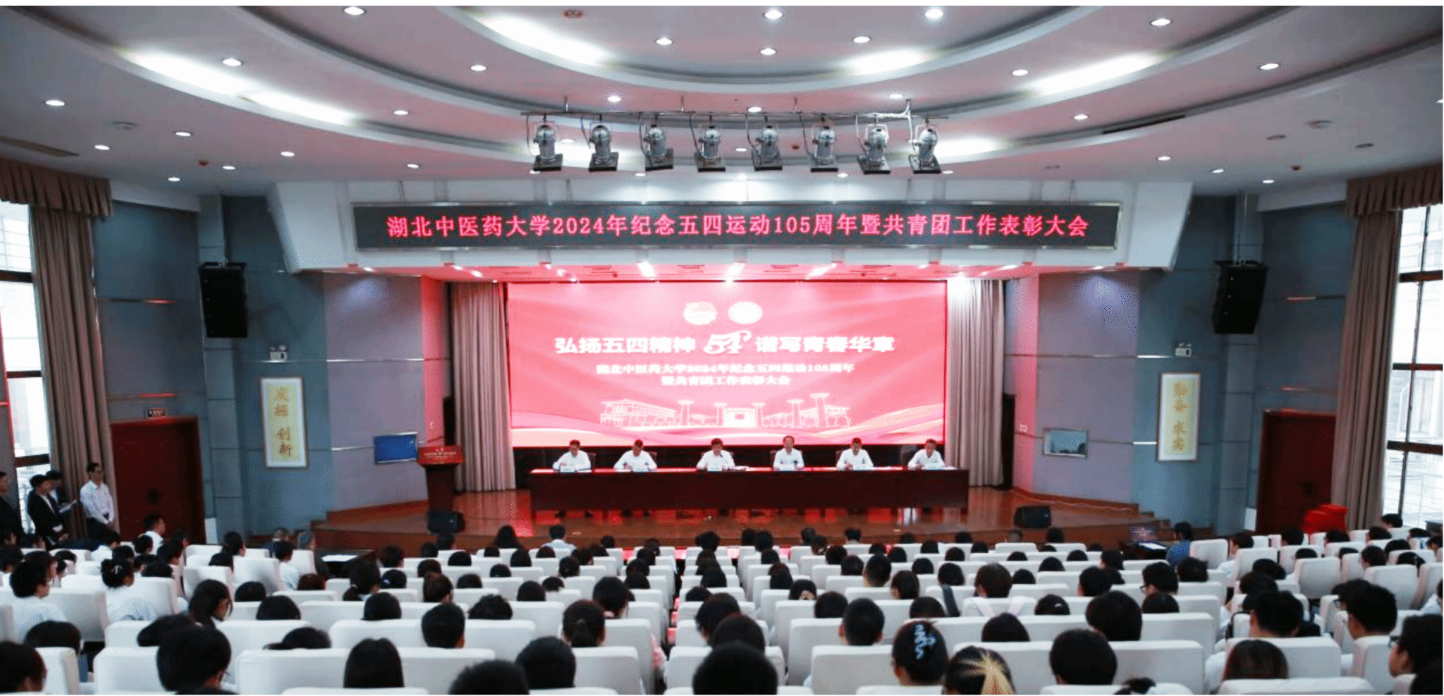 弘扬五四精神,谱写青春华章。此次大会是一次缅怀革命先烈、传承五四精神、凝聚奋进力量的动员大会。我校广大青年师生将以此次大会为契机,在学校党委行政的坚强领导下,全面贯彻党的二十大精神,认真落实学校第二次党代会部署,坚持围绕中心、服务大局,进一步把思想和行动统一到校党委的各项决策部署上来,团结一心、努力拼搏、不懈奋斗,在全面推进强国建设、民族复兴伟业中,在奋力推进中国式现代化湖北实践中,在加快建设特色鲜明的一流中医药大学新征程中,谱写新时代中医药青年的华丽篇章,作出不负时代、不负历史、不负人民的辉煌新业绩。