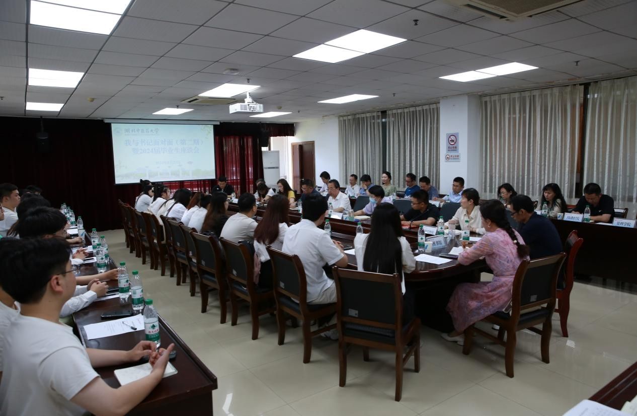 本网讯 5月23日,学校在黄家湖校区明德楼A座一楼会议室召开第二期“我与书记校长面对面”暨2024届毕业生代表座谈会。校党委副书记张子龙,相关职能部门负责人,各学院分管学生工作负责人,毕业生代表参加座谈。