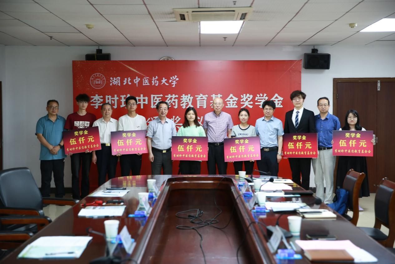 本网讯 5月27日,第八届“李时珍中医药教育基金奖学金”颁奖仪式在黄家湖校区明德楼A座一楼会议室举行。学校1978级中药学专业杰出校友、李时珍中医药教育基金会理事长梅全喜教授,李时珍中医药教育基金会秘书长梅仕明,《时珍国医国药》杂志社社长肖璜,李时珍中医药教育基金会理事、《亚太传统医药》杂志执行主编王尚勇参加颁奖仪式。仪式开始前,校长刘松林会见了梅全喜教授一行。校党委副书记张子龙、党委常委曹继刚,学校办公室、学生工作部、药学院负责人及师生代表参加活动。仪式由曹继刚主持。