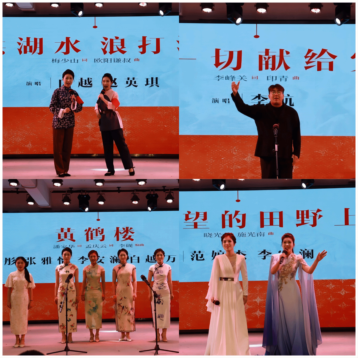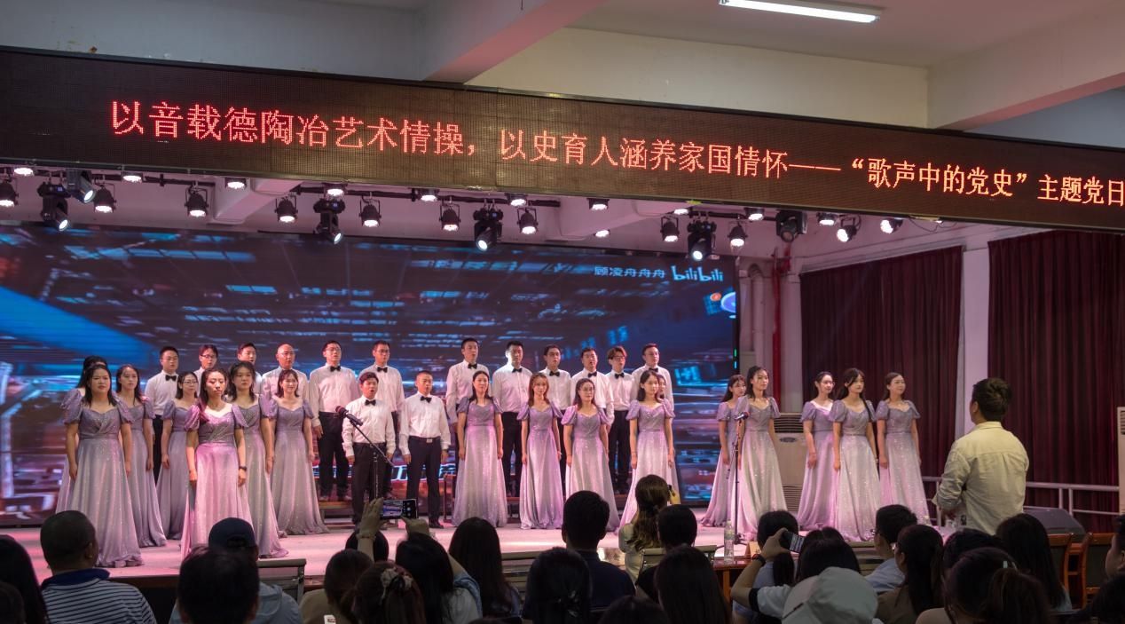 活动在合唱《东方之珠》的嘹亮歌声中拉开序幕。歌曲《如愿》《松花江上》《洪湖水 浪打浪》《把一切献给党》,展现了中国共产党走向成熟的艰辛之路 ;歌曲《春天的故事》《在希望的田野上》《天边》《黄鹤楼》,描绘了新中国成立以来的重要历史节点,展现了改革开放以来取得的伟大成就。最后,活动在慷慨激昂的朗诵《青春中国》中落下帷幕。整场活动让现场师生们在音乐和歌声中感受党史、了解党史、理解党史,用艺术的方式激励老师和同学们不忘初心、坚定信念。