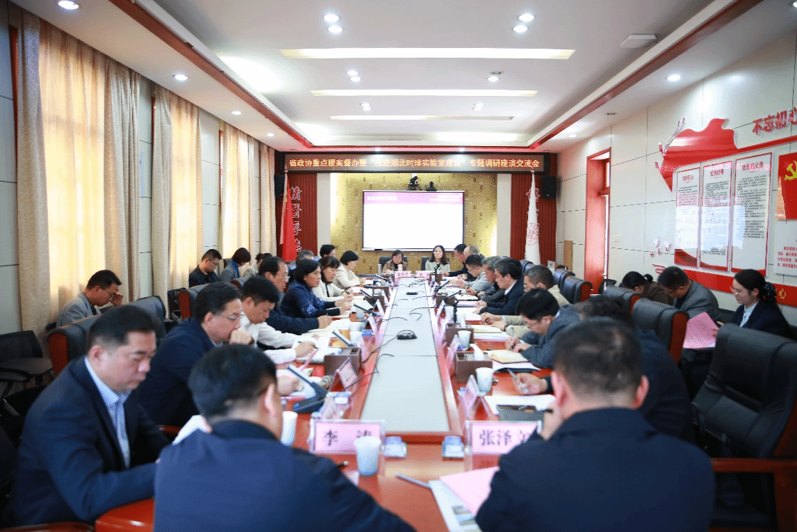 省政协常委、教科卫体委员会主任胡功民主持专题调研座谈交流会。省政协副秘书长、机关党组成员刘丽琼,省政协常委、提案委员会副主任章新平,农工党省委会副主委万晓红,省卫健委党组成员、副主任、省中医药管理局局长邓小川,省科技厅二级巡视员戴新明,东湖新技术开发区管委会副主任周光勇,学校党委书记、湖北时珍实验室常务副主任刘松林,学校副校长杨波、党委常委王彦春陪同调研。省政协、省科技厅、省卫健委、东湖新技术开发区、学校相关部门负责同志,湖北时珍实验室专家代表和工作人员参加会议。
