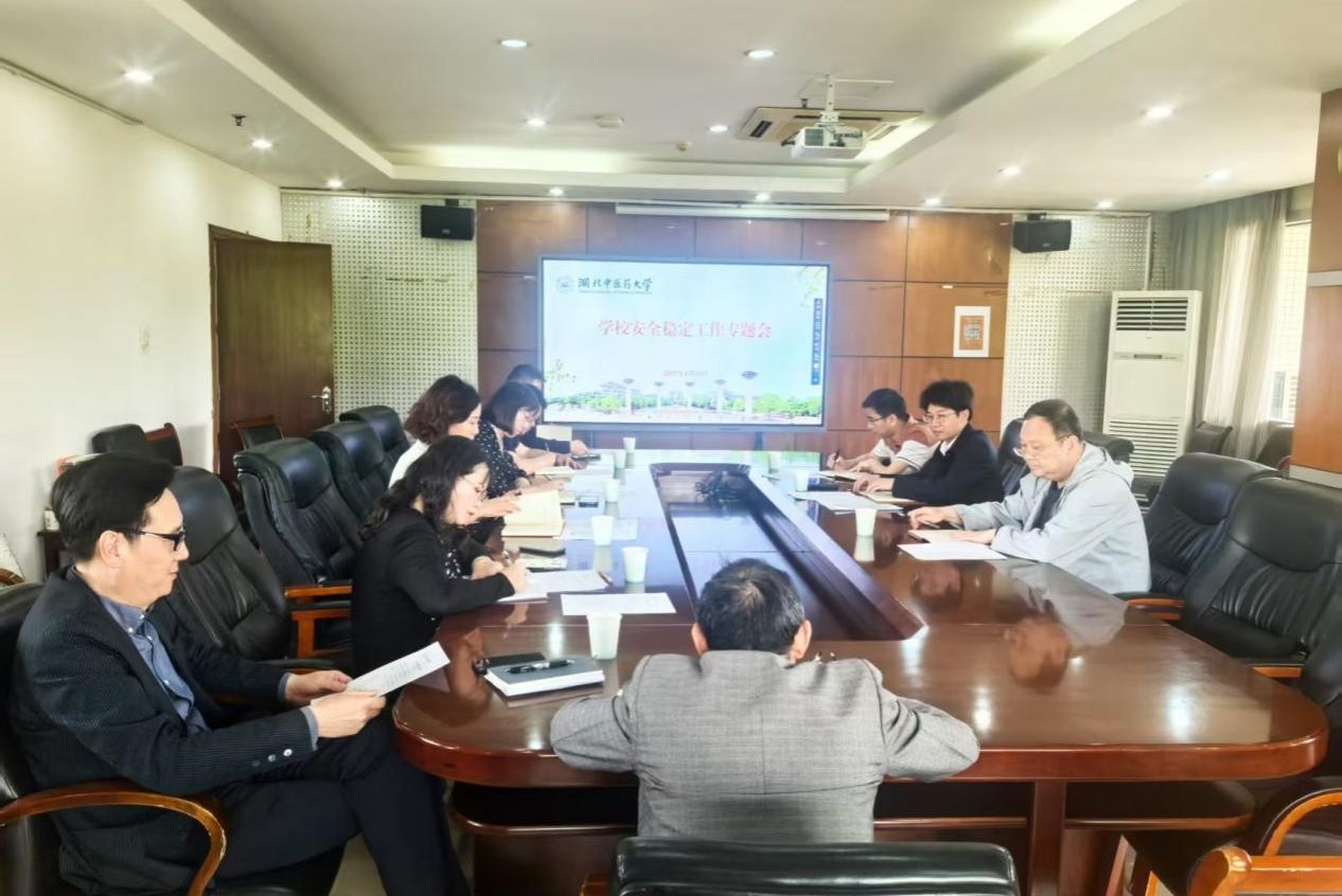 本网讯 4月16日,学校在黄家湖校区明德楼A座二楼会议室召开安全稳定工作专题会议。副校长曹继刚主持会议,学校办公室、保卫处、国际交流与合作处、资产与实验室管理处、后勤管理处、基建处、信息化建设办公室、药学院、检验学院等单位负责人参加会议。