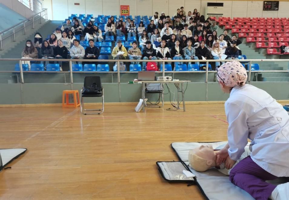 本网讯 为践行“人民至上、生命至上”理念,提高学生应急自救互救能力,近期,教务处与临床技能实训中心在黄家湖校区体育馆组织安排了为期2个月的急救知识培训,覆盖2022级44个非医护类专业学生班级,共2000余人。培训以急救知识宣传教育及急救知识科普实训为主要内容,分理论教学、操作实训两个阶段进行。