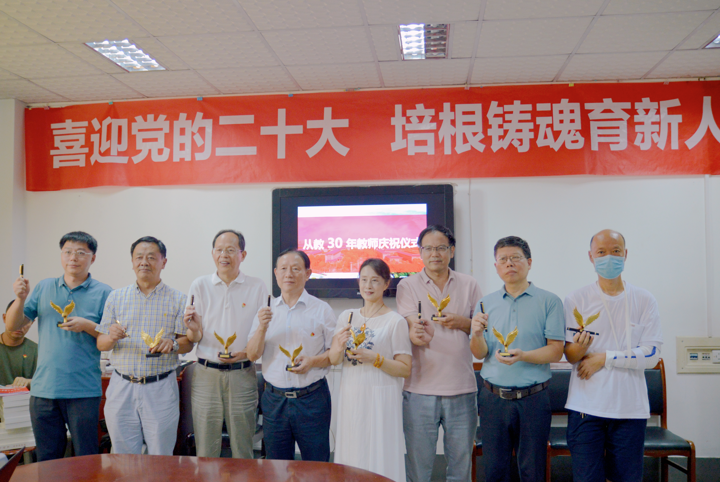 “从教30年的教师们在学生成长路上指引前行;在三尺讲台上传承‘师道’精神、辛勤耕耘,充分体现了对学生的拳拳爱心,对党和国家教育事业的忠诚。”活动中,学院对从教满30年的9位老师王华、孔立红、高铁祥、彭锐、张天民、齐凤军、陈洪波、王亚文、周伟表示崇高的敬意和祝贺,并献上纪念礼。从教满30年的教师们一一发言,回忆从教生涯里的温情时光,畅谈教书育人心得,并勉励青年教师多维度发展自己,提升教师职业的荣誉感和幸福感,做敬业奉献的“四有”好老师。