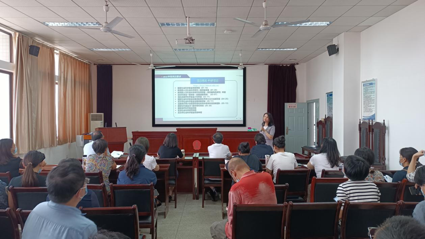 本网讯 为进一步提升教师业务能力和科研水平,锻造高素质专业化创新型教师队伍,为教师发展搭建相互学习、共同成长的交流平台,9月8日,人文学院启动第二届“变革创新•聚力同行”教师发展论坛。外国语学院刘娅教授应邀担任首场主讲嘉宾,她以“漫谈项目申报之路”为题,为人文学院全体教师作了讲座,学院相关负责人主持讲座。