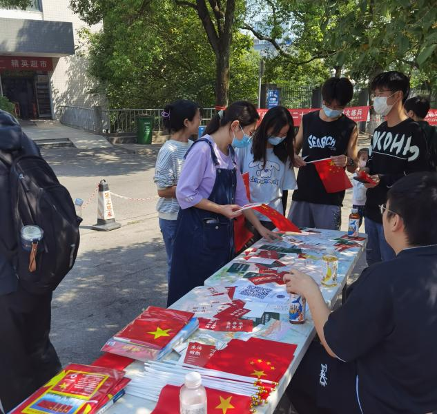营造氛围激发爱国情感。9月26日,第一临床学院学生会在昙华林校区设置摊点为同学们发放小国旗以及祝福明信片,让鲜红的国旗在校园之中处处飘扬,营造浓厚的爱国氛围。
