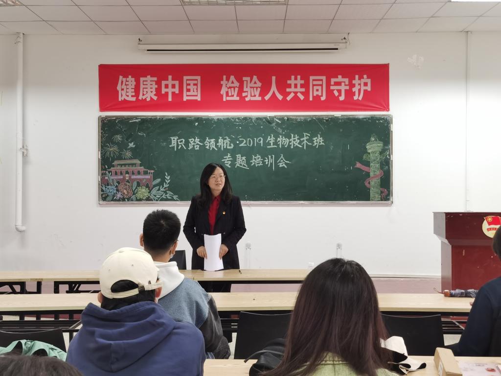 活动中,学院学生工作负责人结合学生管理工作经验,围绕学生所思所想所盼,分析了当前的就业形势及生物技术专业的优势,并结合往届毕业生就业案例,生动地讲解了就业关键时间节点、求职简历制作、面试技巧等知识。她要求全体毕业生把握当前生物医药产业的重大发展机遇,树立正确的就业择业观念,努力提高专业素养,增强综合素质,不断提升就业竞争力;在就业过程中找准自我定位,树立信心、从容应对,主动出击、积极争取理想的工作岗位。学院辅导员结合近三年生物技术专业毕业生就业数据,就实习安排、考研复习、就业择业等方面作了指导。同学们纷纷表示,此次活动恰逢其时,让大家受益匪浅,明确了未来努力的方向和方法。