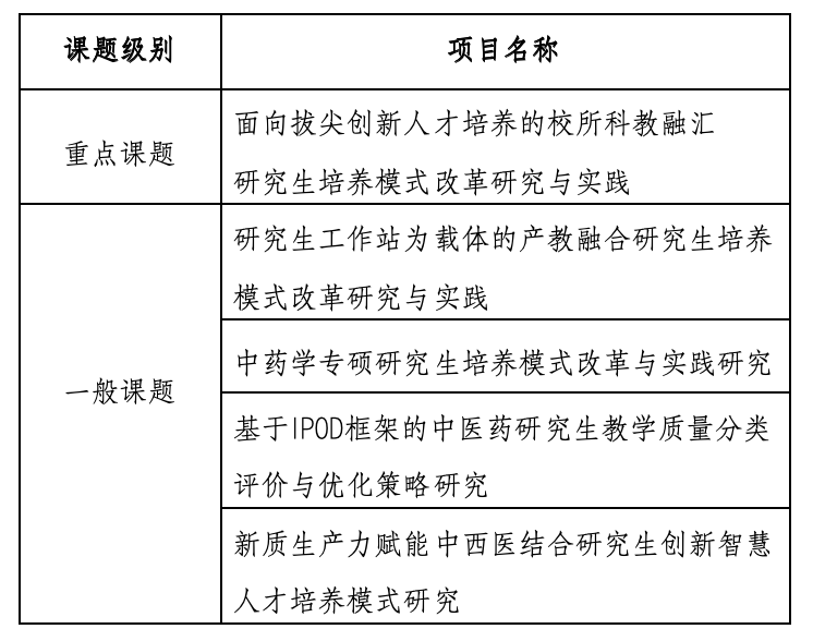 2024年全国中医药研究生教育研究课题立项名单(湖北中医药大学)