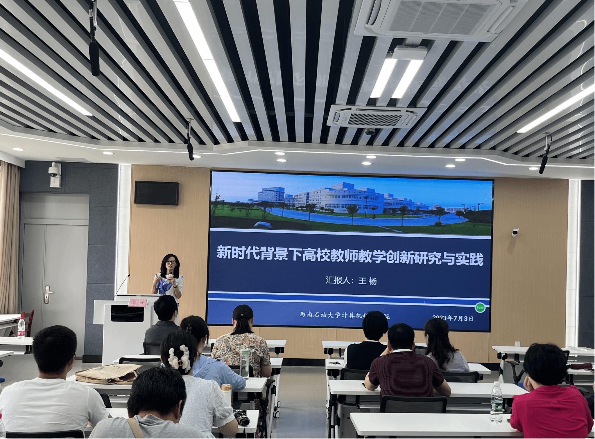 本网讯 为加快一流课程建设,更好地引导教学创新与改革实践,助力人才培养,7月3日,药学院特邀西南石油大学计算机科学院院长王杨教授来校,在黄家湖校区本草苑Y102讲授题为“新时代背景下高校教师教学创新的研究与实践”专题讲座。讲座由药学院相关负责人主持,药学院全体教师聆听讲座。