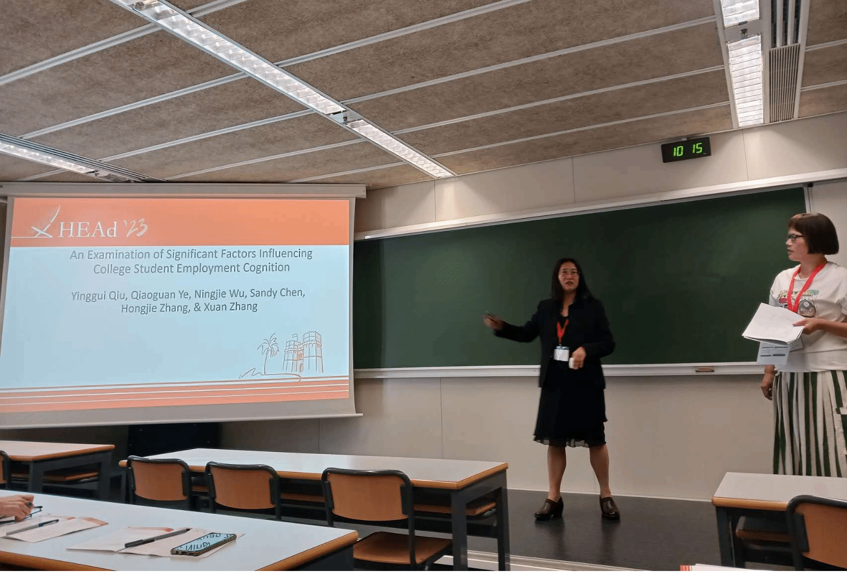 本网讯 近日, 第九届高等教育进步国际会议(9th International Conference on Higher Education Advances,HEAd'23)在西班牙瓦伦西亚理工大学召开。来自英国、澳大利亚、美国、加拿大等50多个国家的250多名高校教师和研究人员参加会议。我校管理学院邱映贵老师受邀参会,并作题为“An examination of significant factors influencing college student employment cognition”的英文主题报告。
